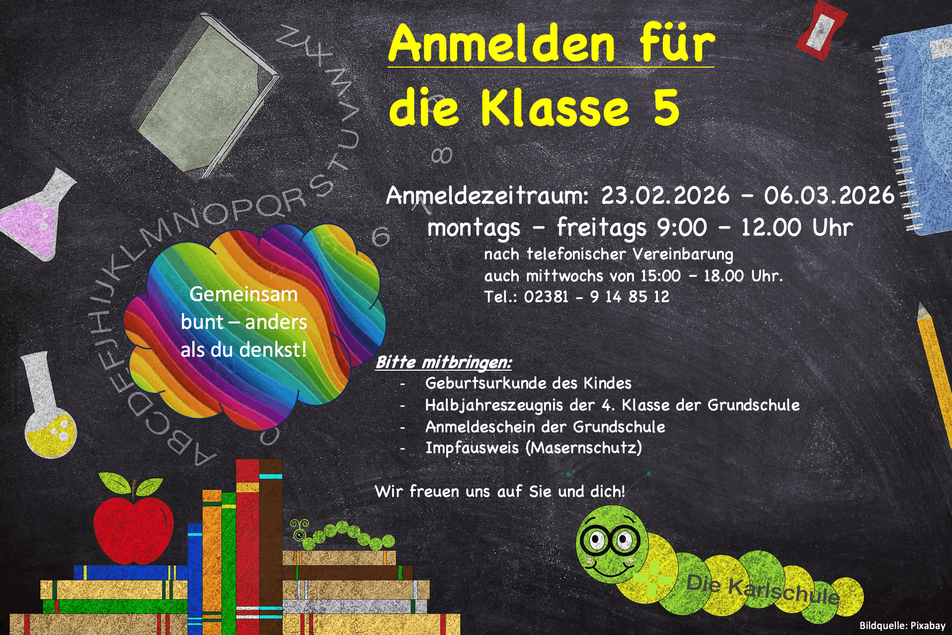 Aktuelle Informationen zur Anmeldung zur Klasse 5: